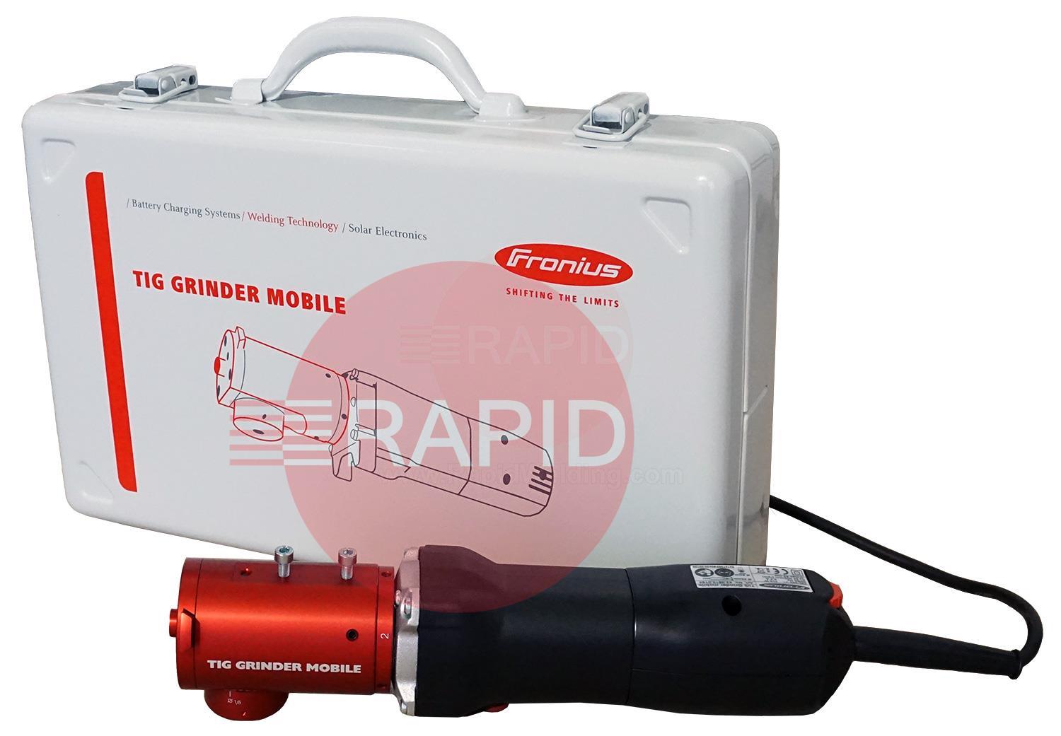 The portable Fronius TIG Tungsten Grinder is extremely versatile and user-friendly, with self-containing capabilities to prevent any harmful grinding dust from releasing into the workshop atmosphere. It is supplied with a carry case, accessories, operating manual, and UK plug adaptor.