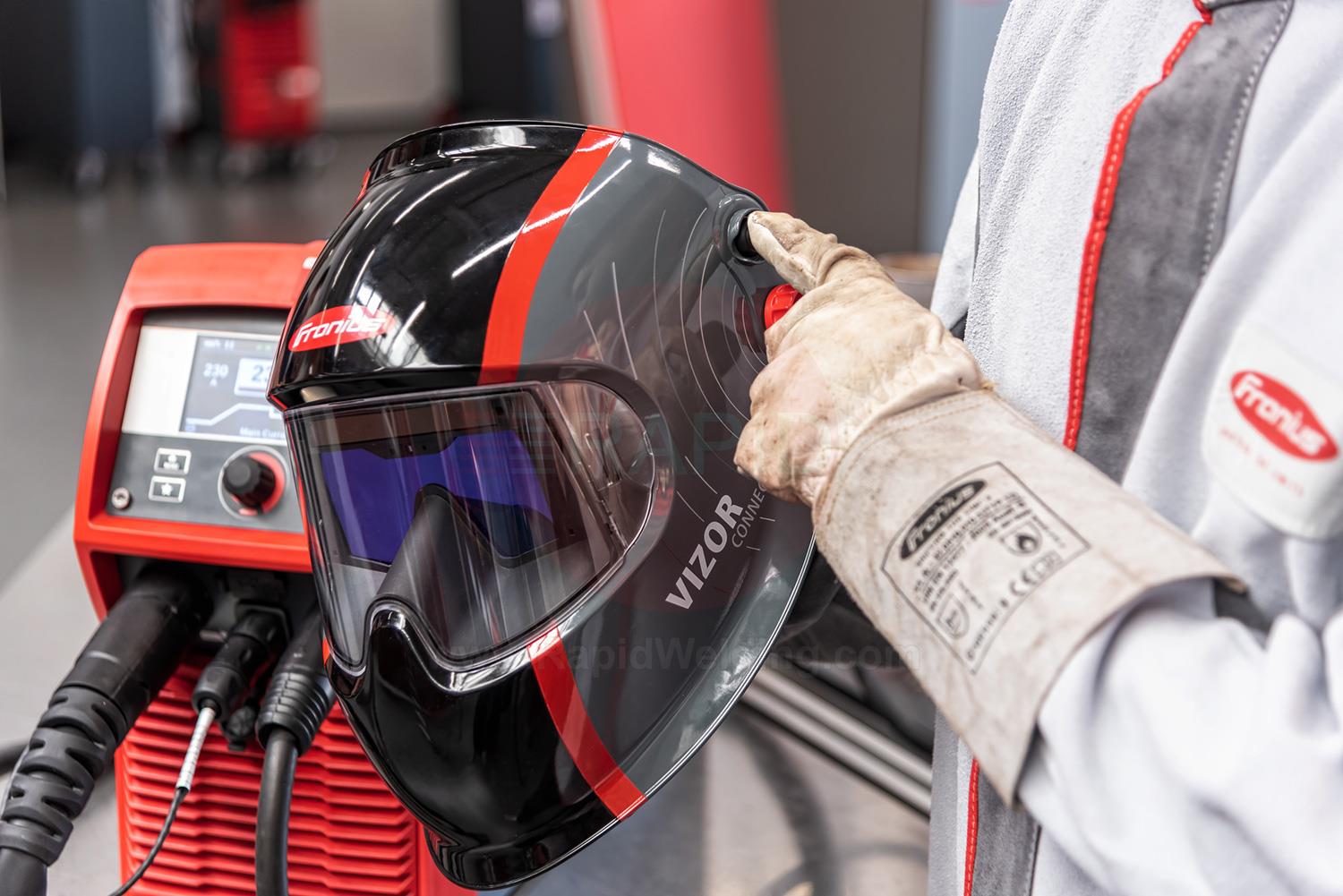 The Vizor Connect is the world’s first welding helmet that connects and communicates with a power source via Bluetooth. The welding helmet's smart sensitivity means it darkens before ignition rather than waiting until the arc has been lit. The Vizor Connect also eliminates the difficulty of interference from exterior lighting and reliably darkens even in the most challenging welding situations. It consequently guarantees a higher degree of both safety and comfort.