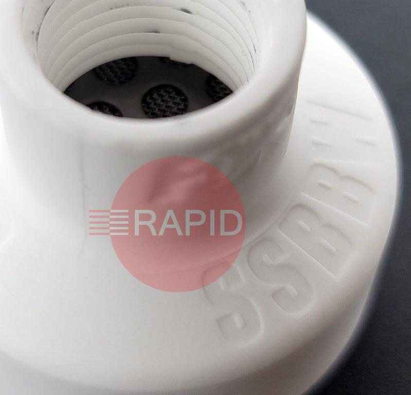 Genuine Furick SSBBW Ceramic Cup Kit Size #19 for 2.4mm (1x Cup & 1x Diffuser). Includes one SSBBW Ceramic cup size no.19. To fit 9/20 torches with 2.4mm Gas Lens (45V44). It will also fit 17/18/26 Style torches with an adaptor kit available separately. The SSBBW Ceramic Cup Size #19 is the long-awaited bigger sister to the beloved BBW SG-19. Comes with 3/32" Diffuser. The SSBBW will be using 35-50 CFH Argon. Recommended for Titanium, Inconel and Stainless Steel.