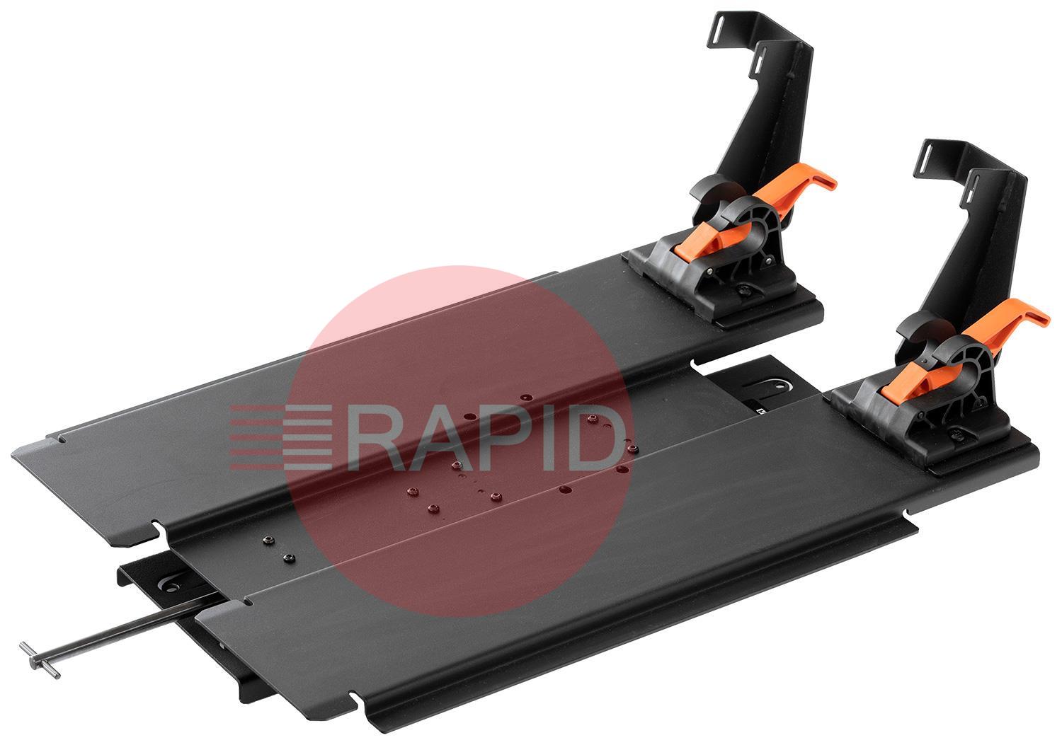 A rotating plate with a +-90° rotation angle for two wire feeders. Seven locking positions, including locking into the centre position. Contains a wider front wheel bar for the cart. Y-coupler components are included by default for connecting two separate interconnection cables (2m).
