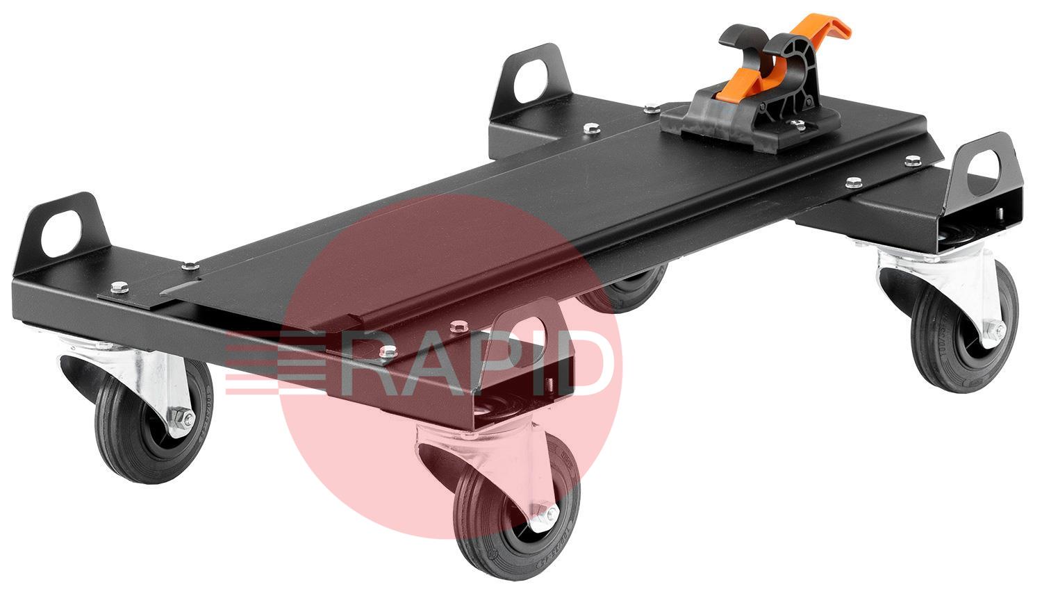 4-wheel trolley for X3 / X5 Wire Feeders. Reliable locking mechanism keeps the wire feeder firmly on the wheels.