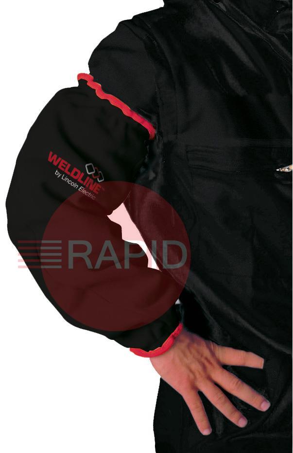 The Weldline Short Oversleeve is designed to protect the arms of the welder from welding spatters. All Weldline sleeves are ergonomic and fixed with leather straps, with tightening elastic around the wrists and are at single size only. Width 40cm.