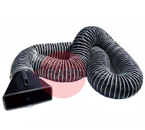 The SUS-5/160 is a flexible 160mm diameter hose with a suction nozzle, fitted with a magnetic foot. It is supplied with a hose clamp and can be enlarged by an extension hose. The SUS-5/160 is designed to be connected to a portable extraction fan MNF.