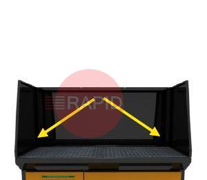 Side panels improve the extraction effectiveness by reducing the influences of draught. They also prevent tools, metal and other parts to fall off the downdraft table. They are swivable to accommodate large workpieces.
