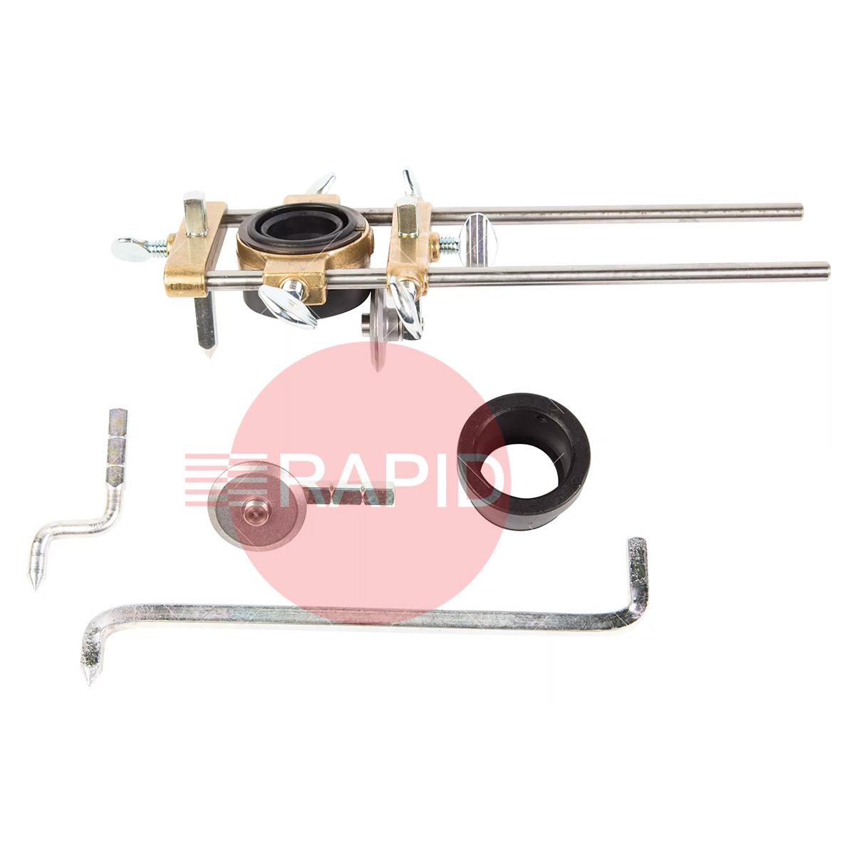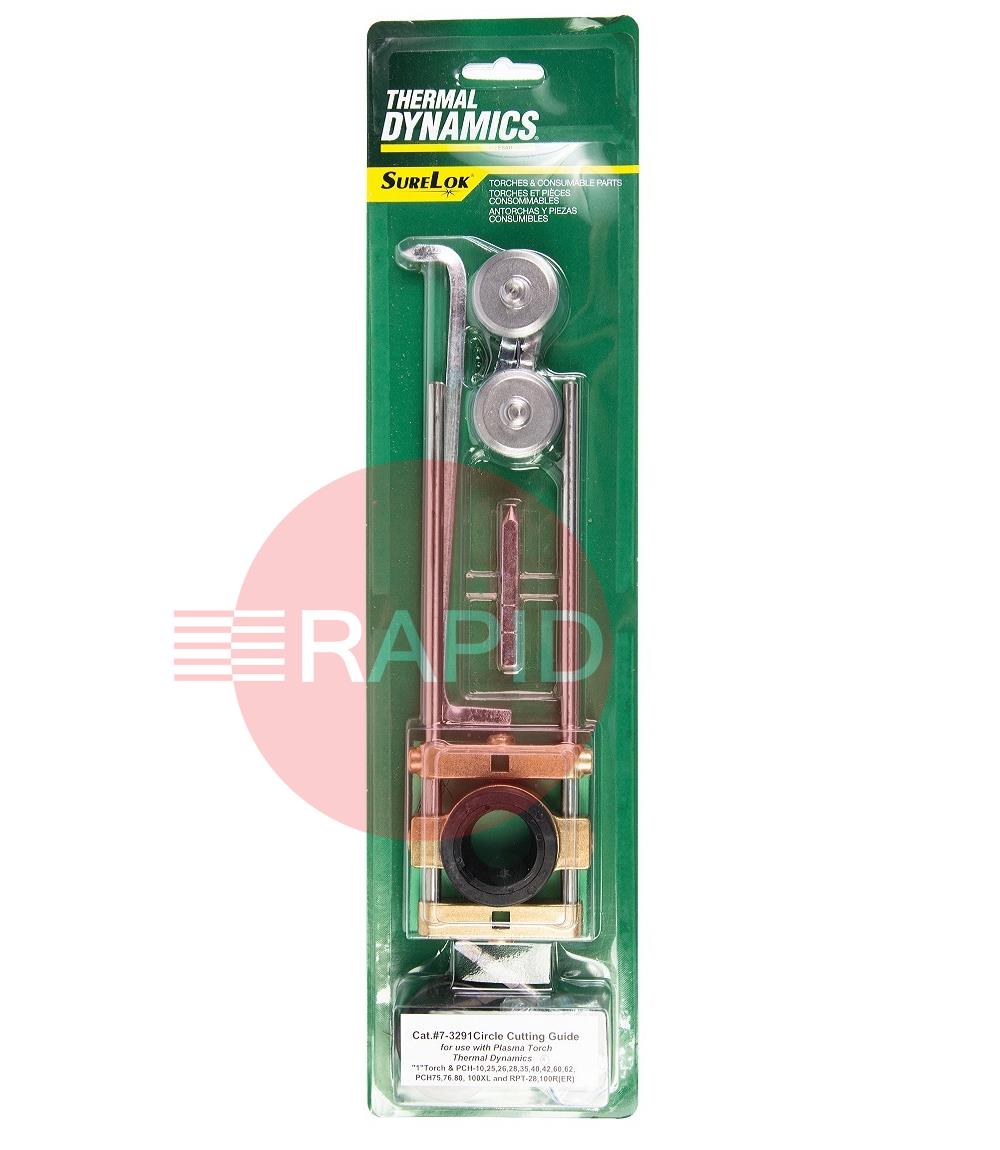 Cuts 2.125" (54mm) to 27.75" (705mm) circles (using magnetic attachment) when cutting or bevelling is required. For use with most Thermal Dynamics torches. Guide shown with optional pivot (7-3148).