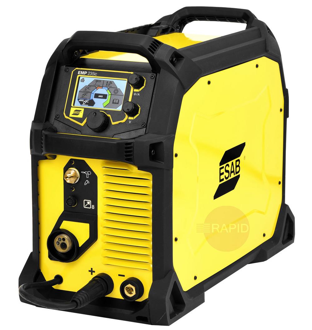 Rebel EMP 235ic offers the same multi-process capabilities as the smaller EMP 215ic but with more power (230A at 25%) and higher wire speed. It is configured to carry 200mm or 300mm (15Kg) spools and is equipped with a gas valve for built-in gas control in TIG mode. The multi-process capabilities of the EMP 235ic, combined with its low weight and compact format, make this machine truly versatile.