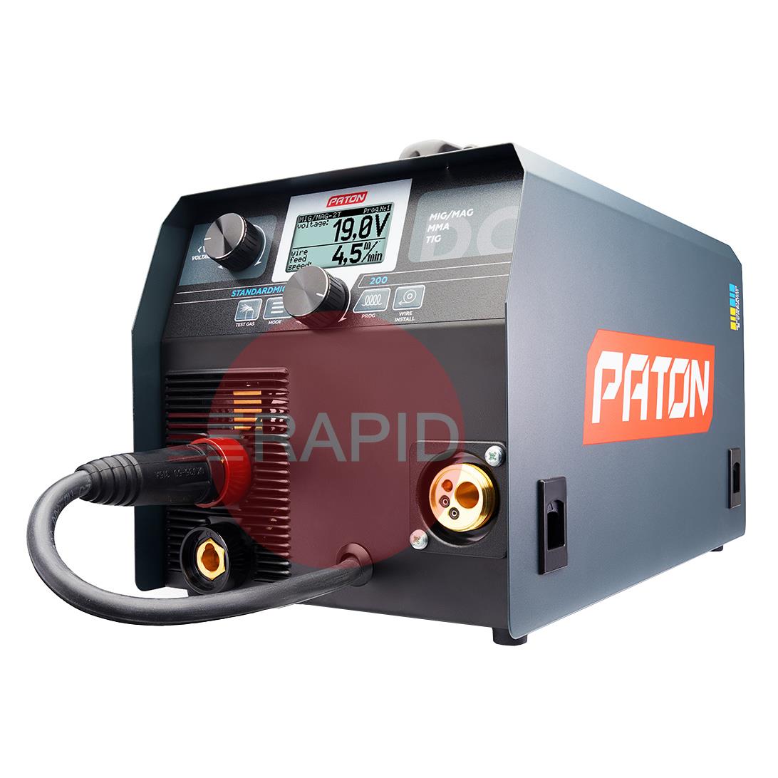 The Paton StandardMIG 200 MIG/MAG MMA/TIG Lift welder inverter is designed for semi-automatic MIG/MAG arc welding, gas shielded TIG arc welding and manual MMA arc welding with direct current (DC), with the possibility of using the PULSE function. The StandardMIG 200 features a 45% duty cycle and a 5-year warranty.