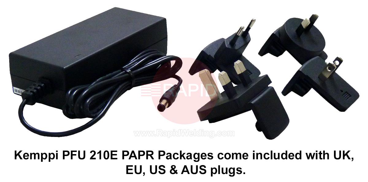 This Kemppi ready-to-weld package includes the BETA E90 welding helmet with an auto-darkening XA 47 welding filter with a shade range of 9-15. This package also includes the PFU 210e powered air-purifying respirator system.