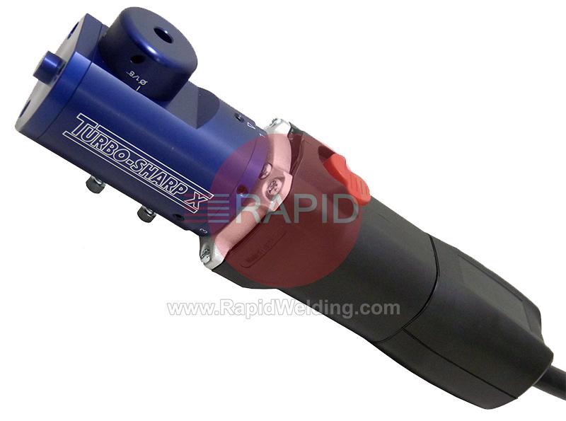 TURBO-SHARP® X is an enclosed electrode grinder, which significantly reduces harmful radioactive (2% Thoriated) grinding dust exposure to both the user and the environment. Properly ground electrodes improve arc starting and stability, reduce tungsten shedding, increase electrode life and enhance welding consistency. The new and improved Turbo-Sharp features an adjustable head and grinding discs which now last 3 times longer.