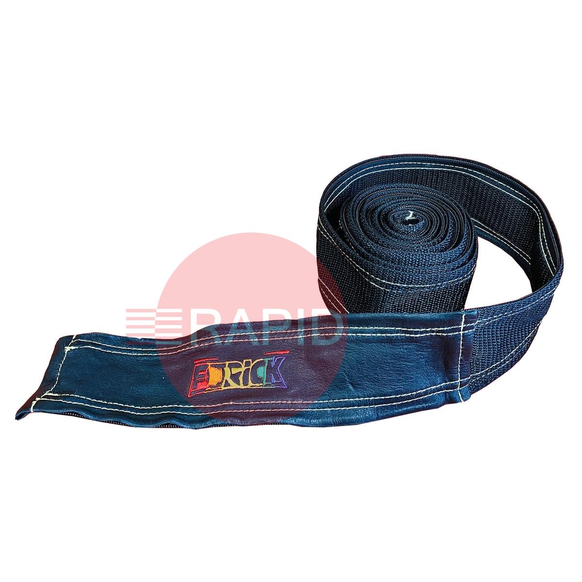 3” (76.2mm) wide premium leather and nylon hybrid zipper cover sewn with Kevlar thread. Used to bind air/water cooled TIG torch cables without the need for cable ties or tape that can restrict flow.