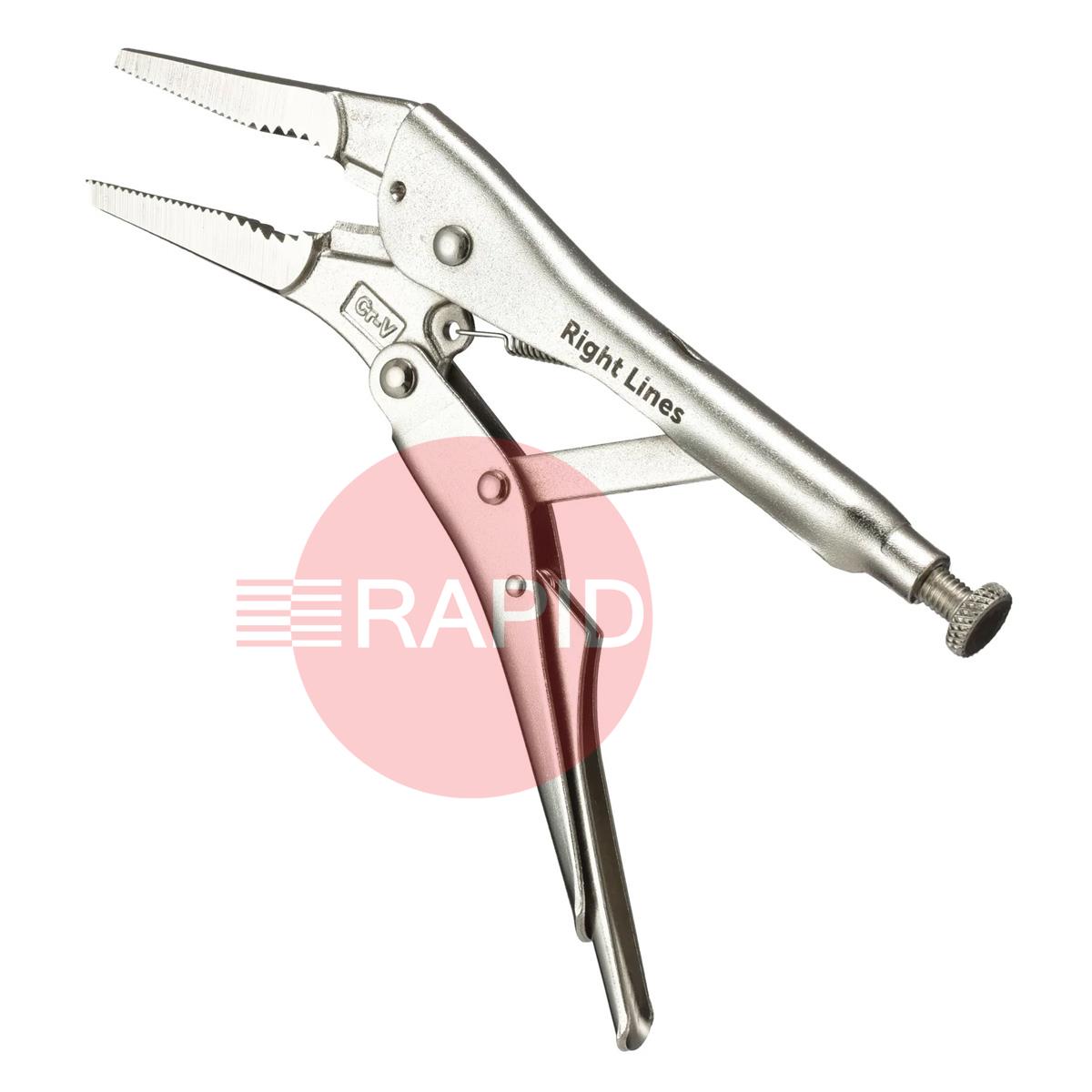 The Right Lines 9" Long Nose Locking Grip Pliers are expertly designed for working in confined spaces and gripping small objects with precision. Ideal for electrical work, mechanics, model-making, and general repairs, these pliers combine extended reach with strong clamping force—making them a go-to tool for professionals and DIYers alike.