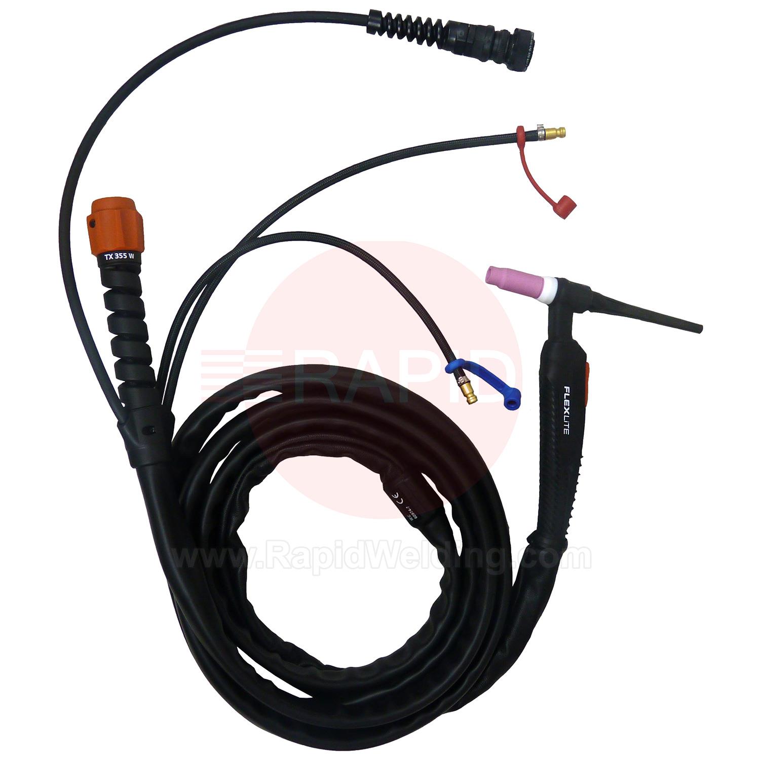• TX355W  Kemppi Flexlite TX K5 355W Water Cooled 350 Amp TIG Torch, with 70° Angle Neck - 7 Pin