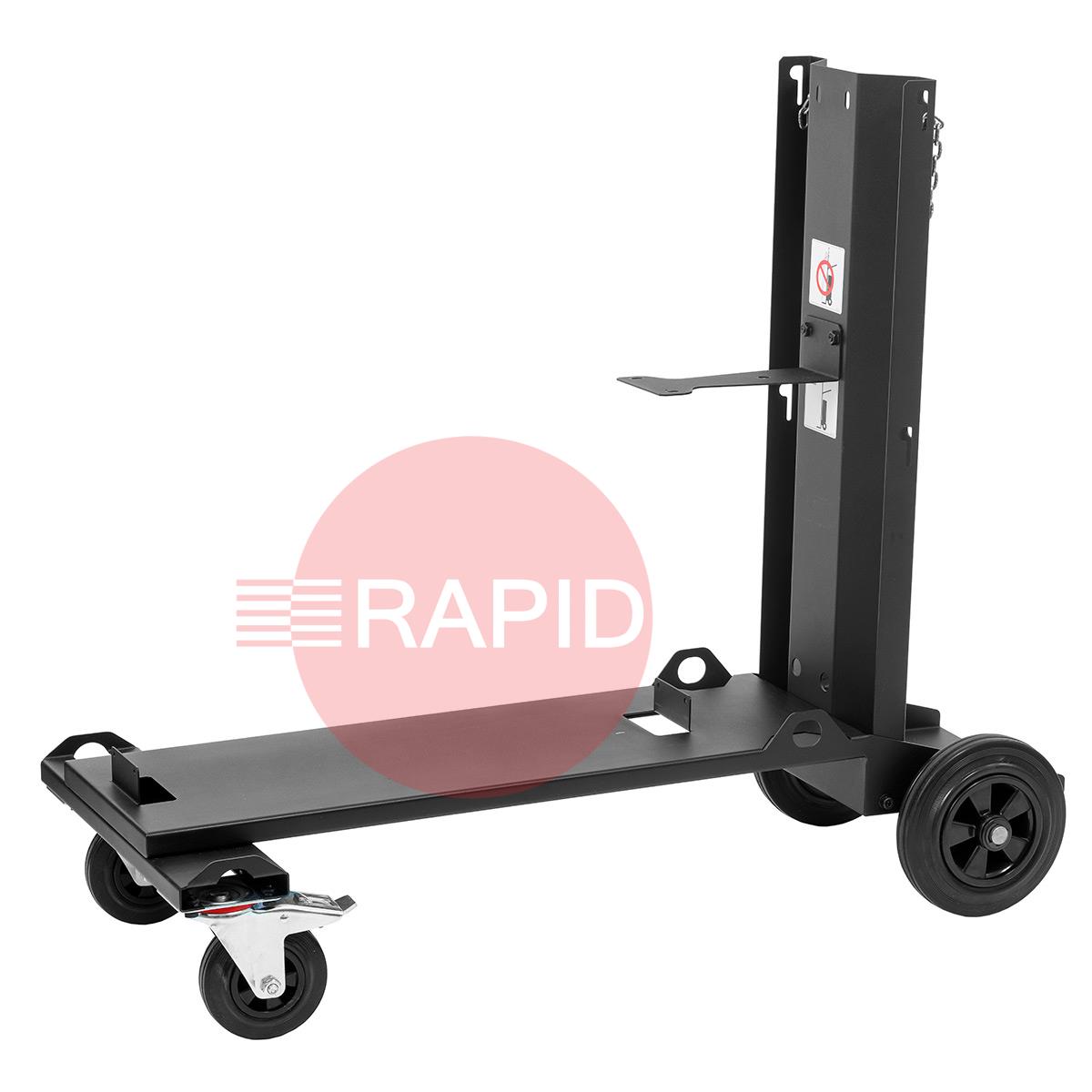 4-wheel transport unit with a gas cylinder holder and lifting points.