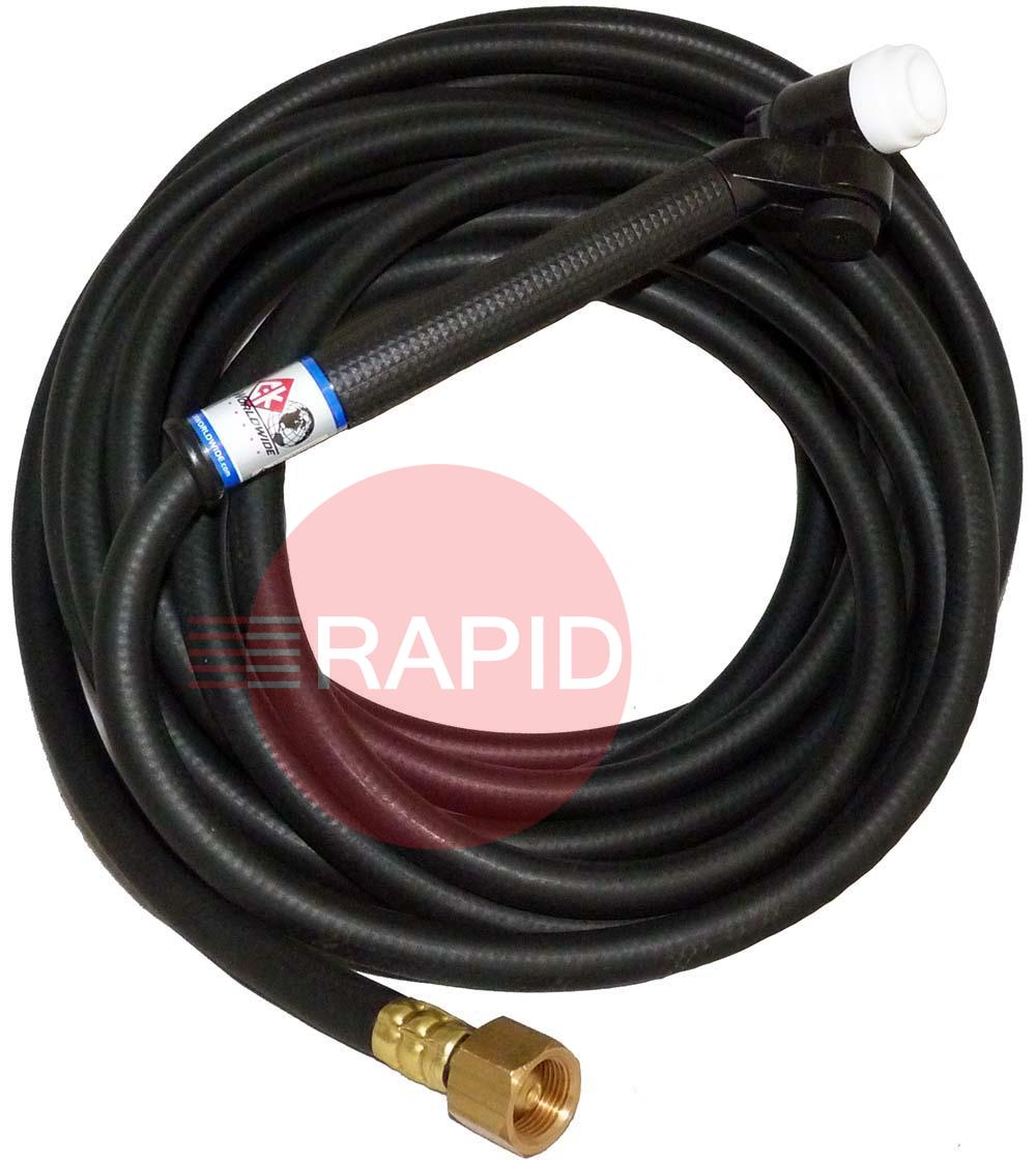 The Flex-Loc™ series torch is a variable angle torch that locks into any position within a 360 degree rotation. Interchangeable heads allow different size tungsten and head sizes to be quickly and efficiently changed. The patented Flex-Loc™ TIG Torch is available in water cooled and gas cooled models. Great for applications requiring a unique angle yet allowing the user a rigid torch. Ergonomically designed to help eliminate fatigue. Applications: Cup walking on pipe root welds, welds that require a mirror to access weldment, welds requiring different tungsten sizes.