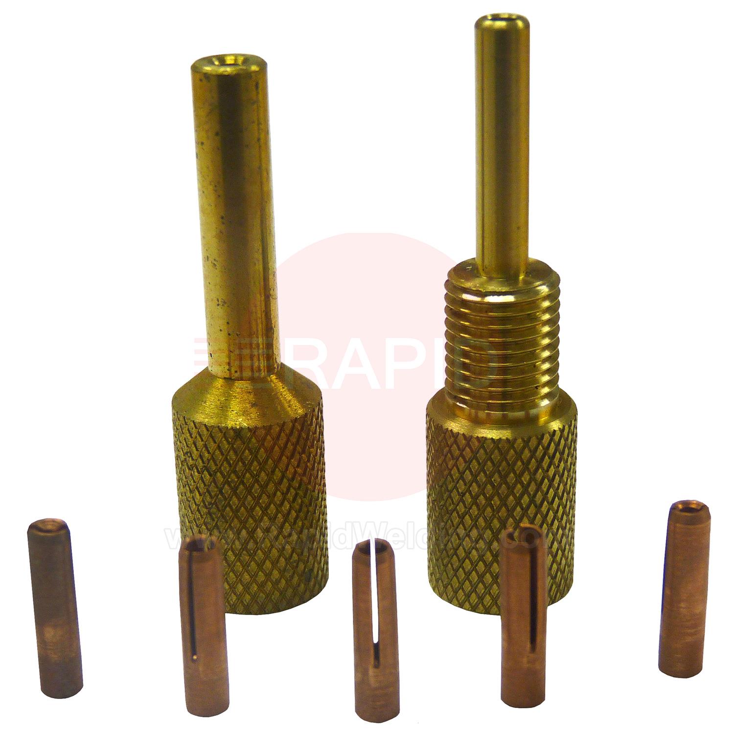 Holds short tungstens down to 19mm. Includes 1mm, 1.6mm and 2.4mm collets.