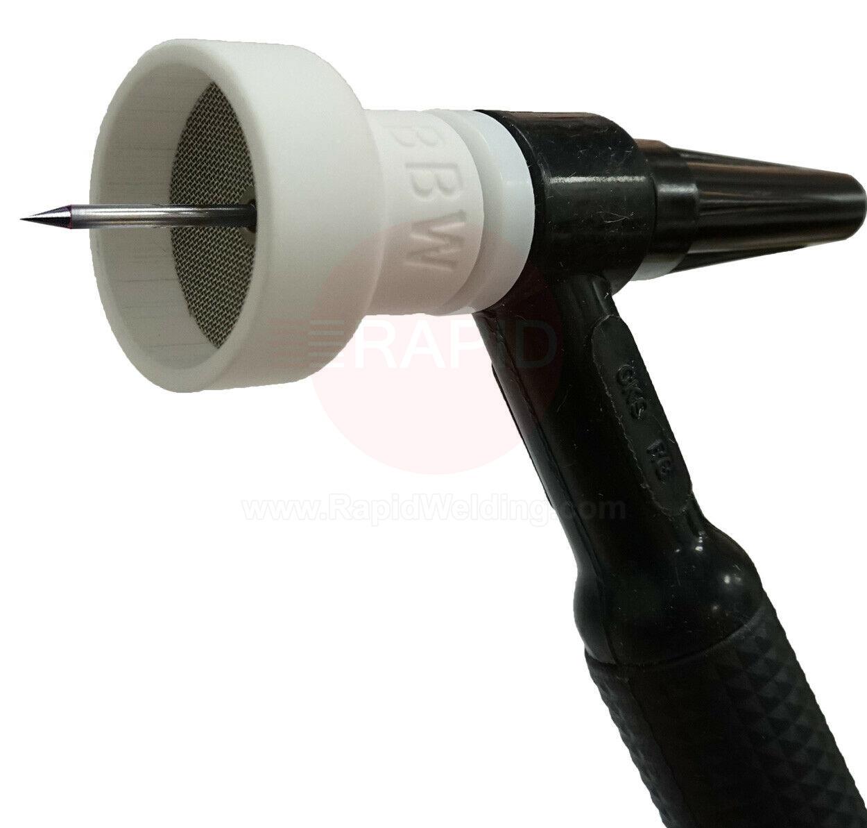 The Furick BBW ceramic cup threads on 45v44 gas lens if a welder has a 9, 20 torch and/or if one has 17, 18, 26 torches. If so, please purchase the adaptor kit if the latter applies.