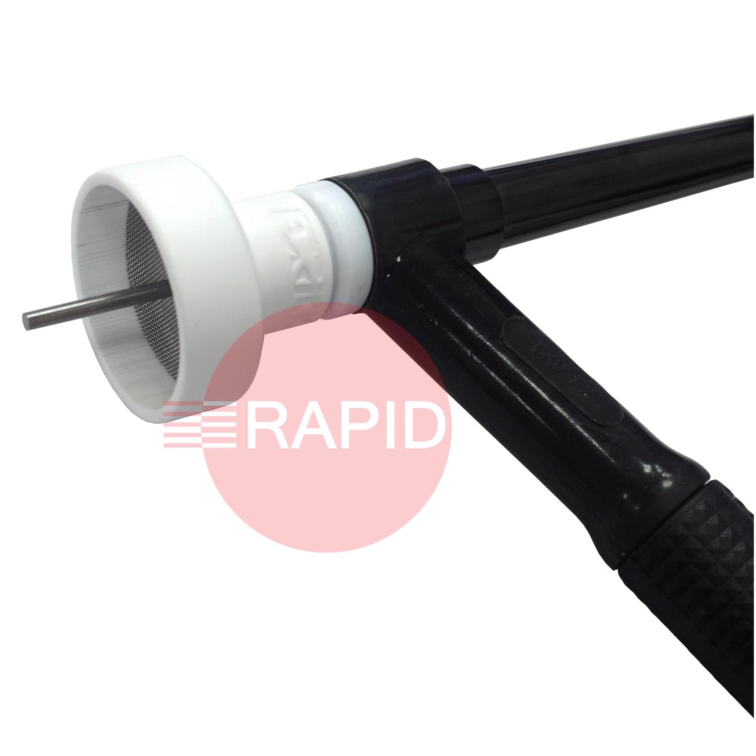 Genuine Furick SSBBW Ceramic Cup Kit Size #19 for 2.4mm (1x Cup & 1x Diffuser). Includes one SSBBW Ceramic cup size no.19. To fit 9/20 torches with 2.4mm Gas Lens (45V44). It will also fit 17/18/26 Style torches with an adaptor kit available separately. The SSBBW Ceramic Cup Size #19 is the long-awaited bigger sister to the beloved BBW SG-19. Comes with 3/32" Diffuser. The SSBBW will be using 35-50 CFH Argon. Recommended for Titanium, Inconel and Stainless Steel.