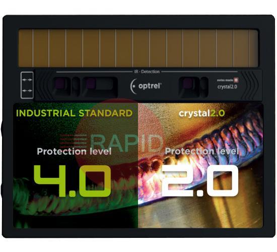 This new development reduces the need for a clear flip-up visor as you can see more through the auto-darkening lens than ever before. The crystal also benefits from Optrel's autopilot feature, which automatically adjusts the dark shade depending on what you are welding, eliminating the need to change shade settings manually. This feature is adjustable to suit your eyes or can be switched off completely for manual adjustment.