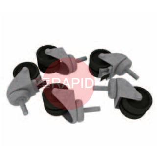 Wheel set for internal transport of a downdraft table and for service purposes. By the use of the wheel set, the working height of the downdraft table is fixed to 950 mm (37.4 in.).