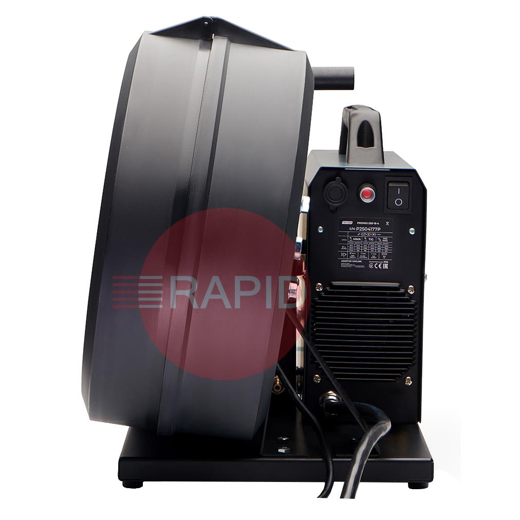 The PATON ProMIG 250 is designed for direct current welding of a wide range of materials in MIG/MAG, MMA and Lift TIG modes. The PATON ProMIG welding machines are designed for professional use. The welding current source can be used separately from the wire feeding unit in order to provide ease of operation in MMA and TIG modes and provide compliance with safety requirements in some welding cases. These machines are operated from a 230V single-phase power supply and have an IP33 protection rating.