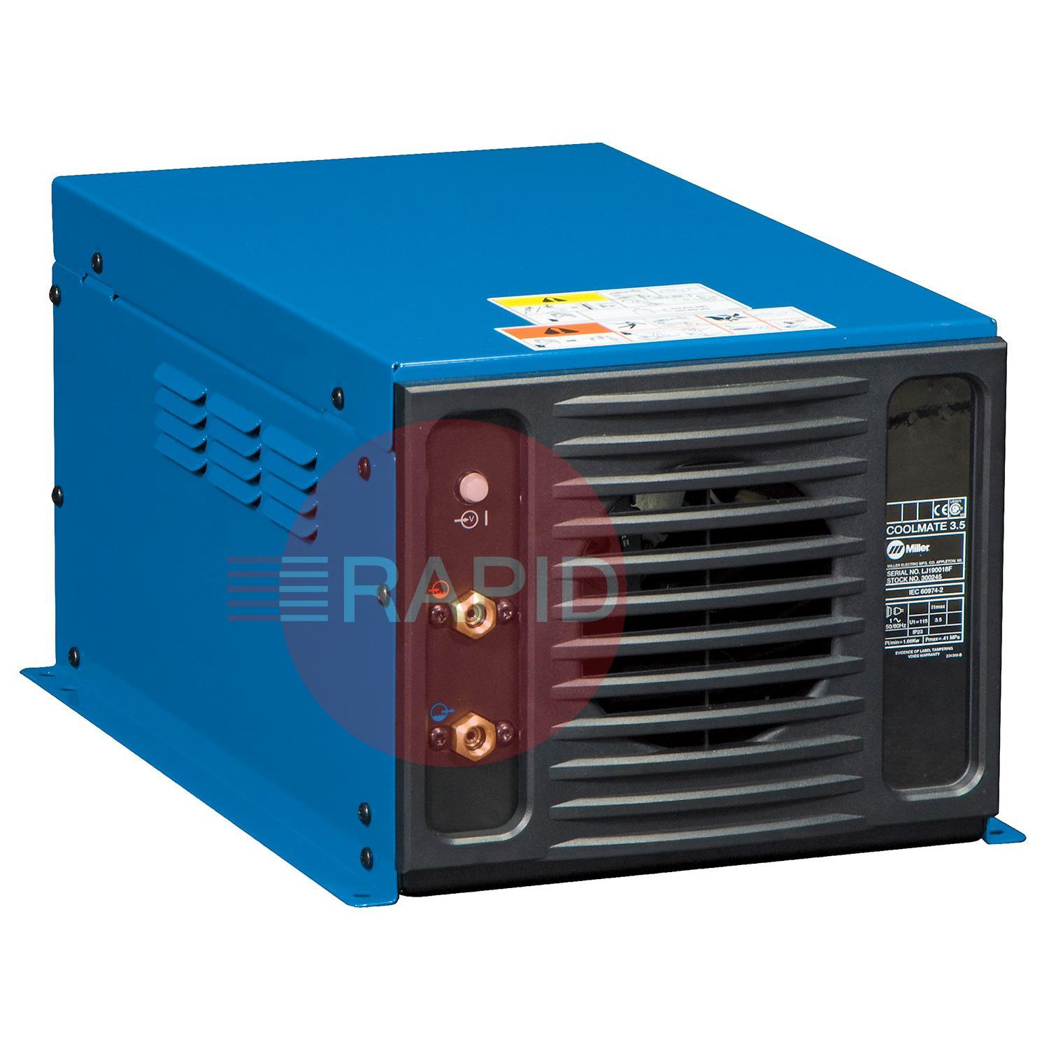 Industrial 3.5 gallon cooler, constructed for water-cooled torches rated up to 600 amps, which varies with torch design and cable length.