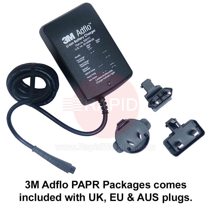 New 3M Adlfo complete unit with a standard lithium-ion battery. Unit includes air hose, airflow indicator, belt, spark arrestor, prefilter, particle filter, battery and battery charger.