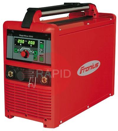 The 2500 model of the Fronius MagicWave series is one of the many digitised TIG AC/DC power sources in their line and is commonly used for aluminium purposes. Weighing at approximately 26.6Kg, the 2500 power source possesses a tremendously robust design and a remarkable state-of-the-art operating system.