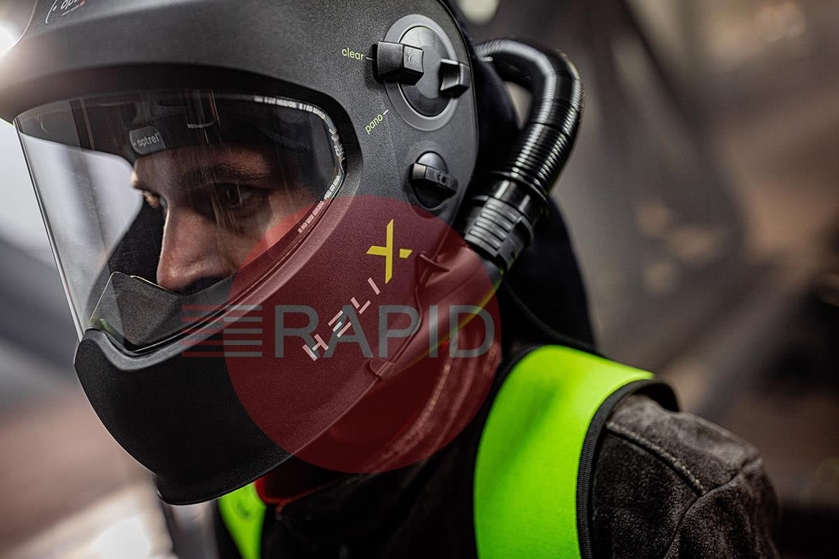 The Helix Quattro fits perfectly with Optrel’s helmet-independent fresh air system Swiss Air. But that's not all. Because now you can also weld, cut, or grind with the Helix Pure Air Quattro as a fresh air helmet in combination with the ATEX-certified e3000X PAPR system.
