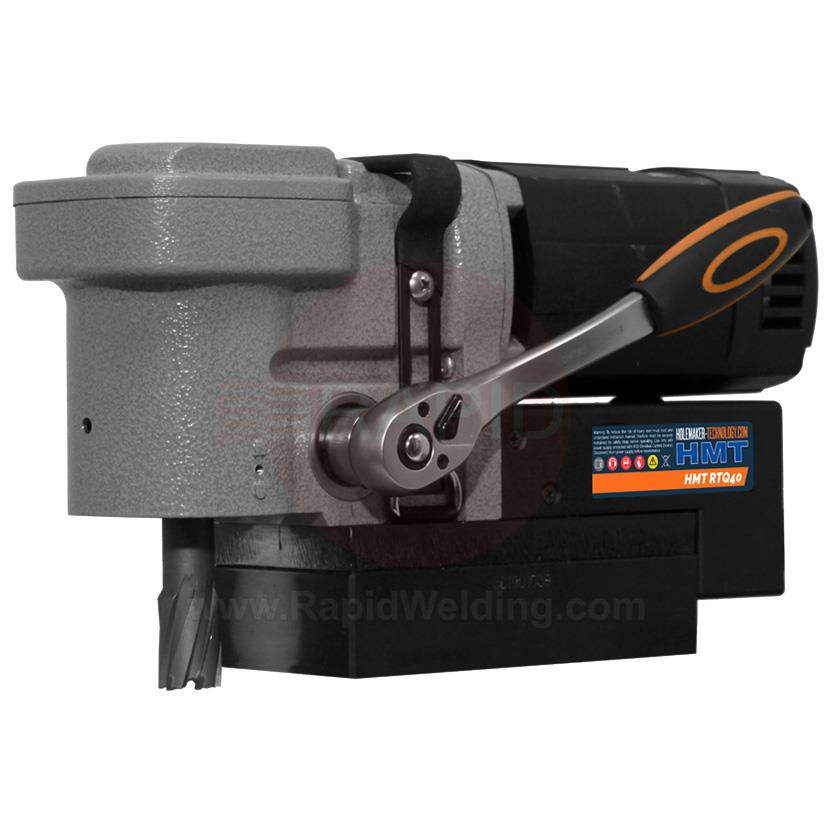 The new HMT RTQ40 is a low-profile Magnet drill for tight access applications and is designed to fit into any space greater than 180mm. Suitable for use with any standard broaching cutters while optimised to work with the high-performance CarbideMax 40 cutters. Each machine comes in a plastic case with hex keys, a safety strap, a ratchet, and a removable coolant system.