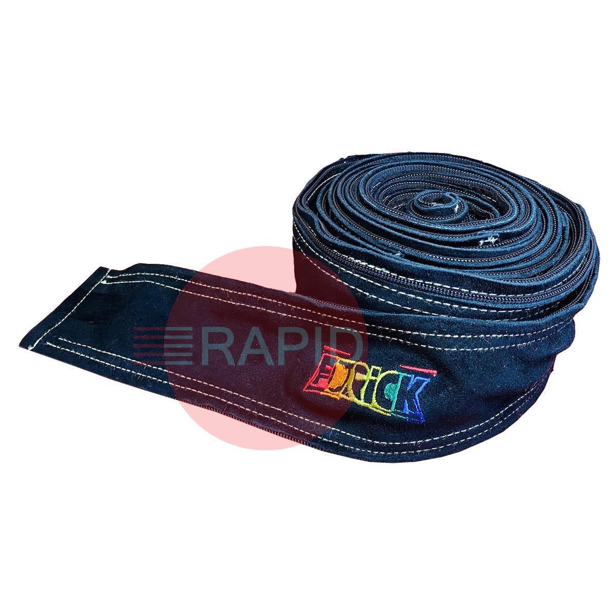 3” (76.2mm) wide premium leather zipper cover sewn with Kevlar thread. Used to bind air/water cooled TIG torch cables without the need for cable ties or tape that can restrict flow.