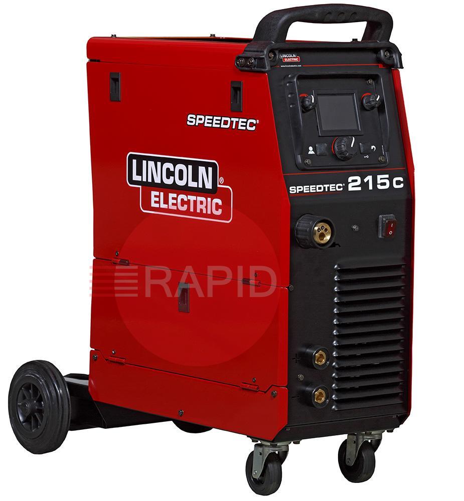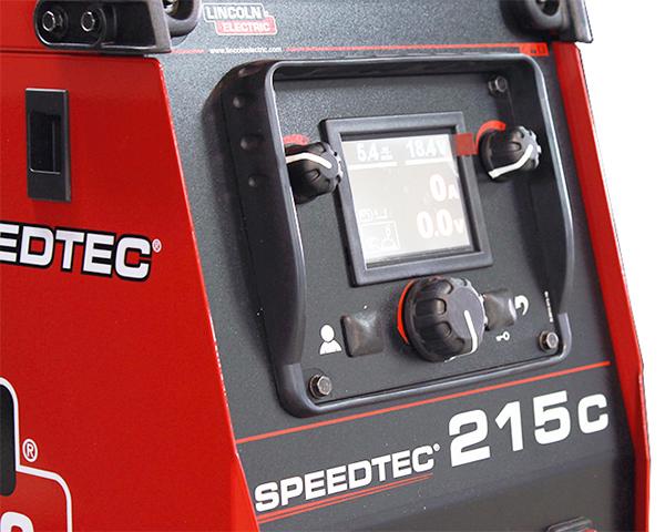 The Speedtec 215C is a small, single-phase inverter-based multi-process machine. It features a colour TFT user interface to make set-up quick and easy, and a built-in synergic mode helps to find optimal welding parameters based on Amperage WFS or material thickness. The Speedtec 215C can have many different welding applications: MIG, FCAW, Stick or TIG (Lift). The smartly designed housing features space for a 15Kg spool and a helpful top shelf and side case for storage.