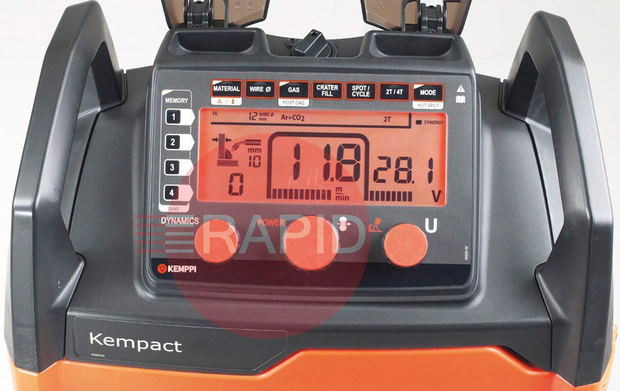 Kempact RA is built on Kemppi’s latest power source platform, ensuring optimal welding performance and excellent power cost efficiency. Delivery specification includes welding gun and earth return lead pack.