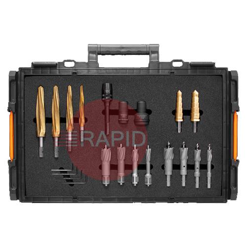 The VersaDrive STAKIT V35T Installation SiteKit contains everything needed to get underway on-site and overcome all the most common metalworking challenges. Whether you need to create holes or alter or tap them, the V35T Installation SiteKit contains the tooling and equipment needed to complete the job quickly and efficiently. As part of the kit a compact but high-power V35 VersaDrive Magnet Drill ensures that wherever you go, you have access to lightweight, portable broaching and drilling capabilities.